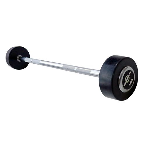Barras con peso fijo, revestidas de caucho de alta calidad, resistente a la tracción, choque, abrasión, arañazos o descamación. La superficie es negro y el color resistente al desgaste. Mango de acero cromado «hard chrome», ergonómico y moleteado antideslizante. Medidas de longitud interior de la barra: 92,5cm. El material de caucho utilizado es absolutamente inodoro. Marca Equipments