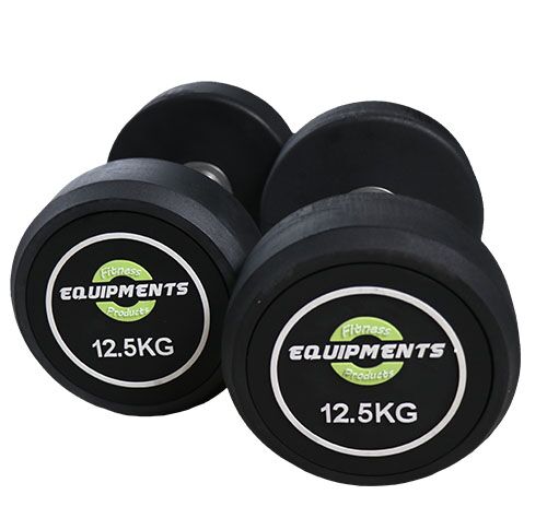 Par de mancuernas de fierro fundido, con núcleo de acero, está cubierta de caucho con una capa de 1 cm de espesor. Profesionales de diseño compacto, extremadamente robustas, no son desmontables y de color negro.