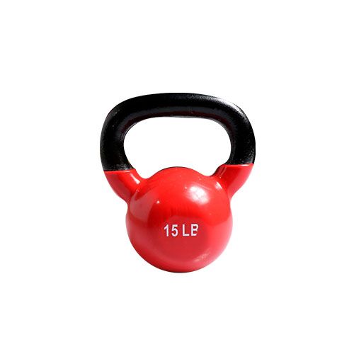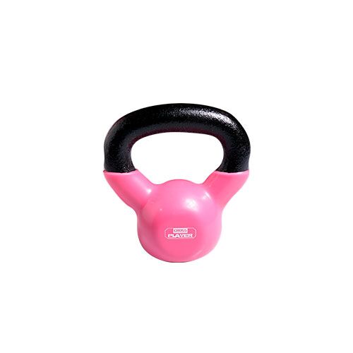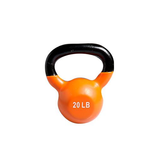 Pesa rusa o kettlebell, base plana y estable. Material: Caucho de alta calidad unido químicamente a hierro fundido.
